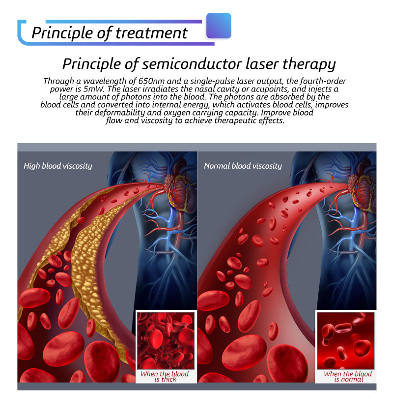 The Rhinitis Therapeutic Instrument mainly adopts the special soft laser light (650nm) which can get through the nasal mucosa of the human body. The soft laser light is providing a mild stimulation that is fully and safety absorbed by the nasal tissue of the human body. This kind of laser light has a special repair function to the nasal mucosa of the rhinitis patients. The repaired nasal mucosa could secrete antibacterial material including lysozyme as normal mucosa and restart the normal cleaning function of the swinging cilia on the nasal mucosa.
